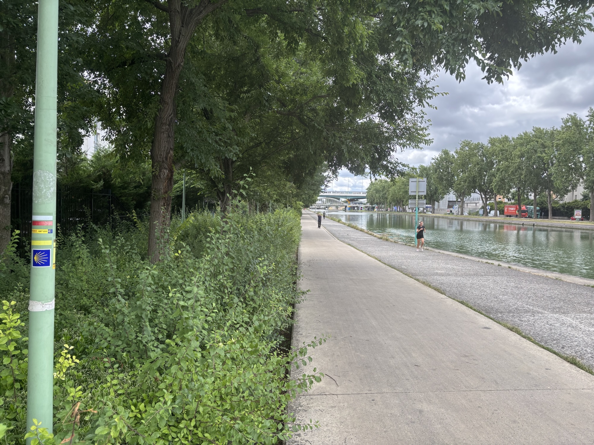 Après avoir traversé la banlieue, je suis arrivé à la basilique Saint Denis, la nécropole des rois de France. Le quartier autour n’est pas franchement folichon. Je suis à nouveau le balisage qui me fait longer le canal Saint Denis et traverser des zones plutôt industrielles.