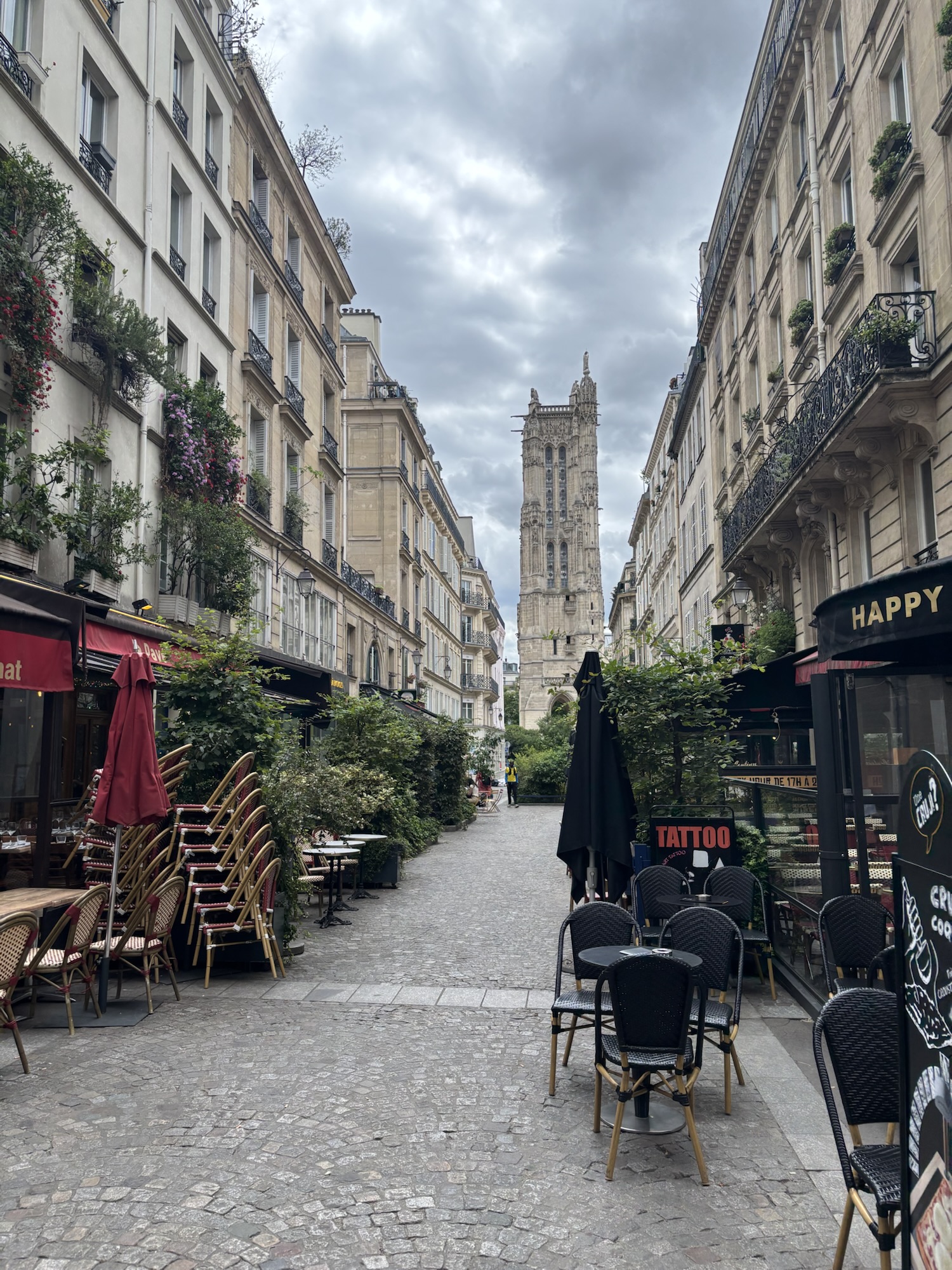 Apres avoir longé Beaubourg et traversé le quartier des Halles, je découvre la tour au bout de la rue, c’est la Tour Saint Jacques, elle représente LE centre de la ville pour les jacquets. À peine quelques pas plus loin, la Seine. Un pont, et on se retrouve sur l’île de la Cité, le cœur historique de Paris.