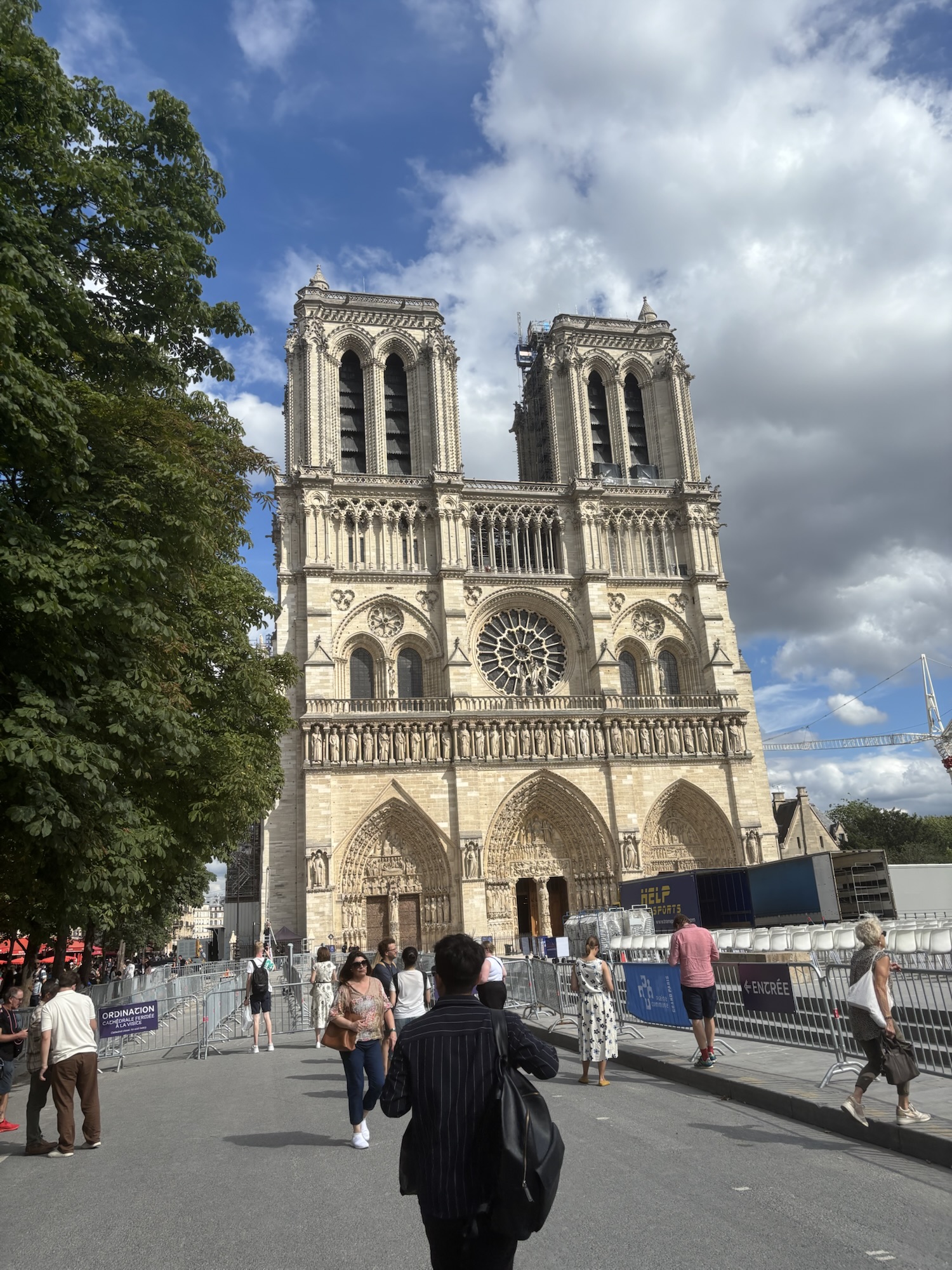 Notre Dame, tout juste remise de son incendie, est magnifique au soleil de cette fin d’après-midi.