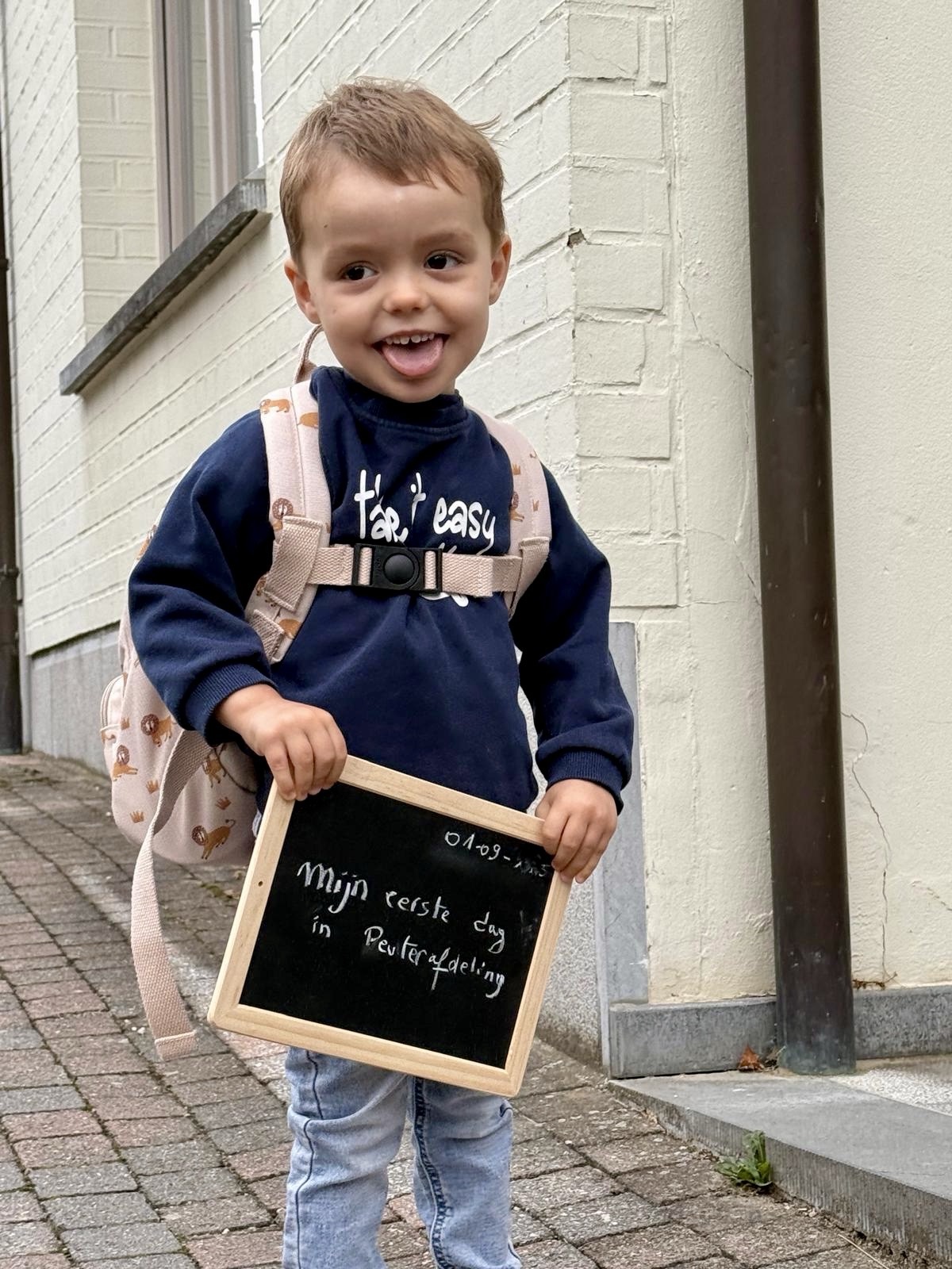 Bravo à James, mon petit-neveu, qui entre déjà au kleutertuin!