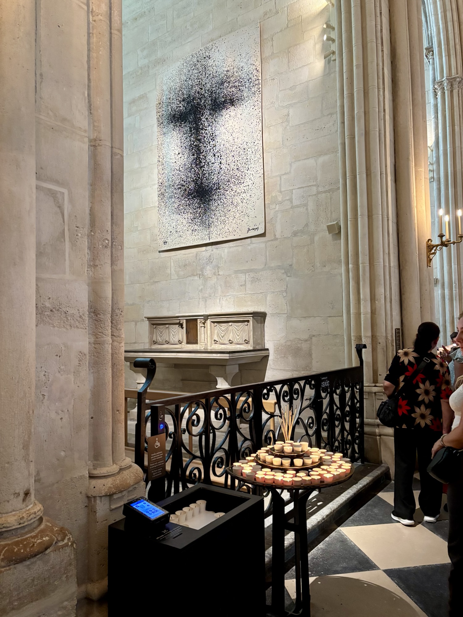 Avez vous remarqué les troncs sont devenus électroniques ? J’ai sorti ma carte pour une petite bougie. Mais chut, ma prière concernait un certain Donald et ma demande n’était pas très charitable, pour lui.