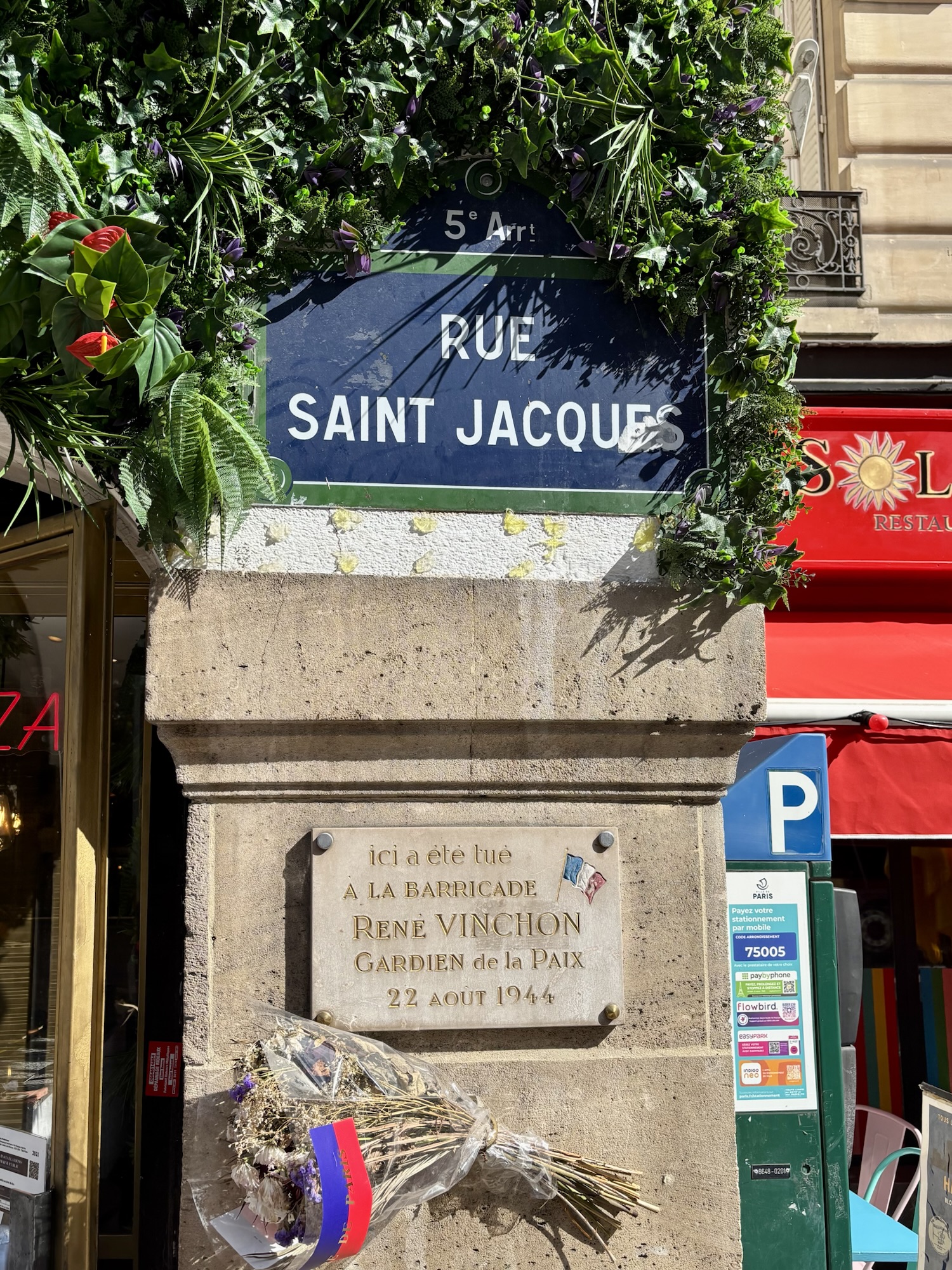 Je quitte l’Ile de la Cité, toujours en suivant les coquilles, pour emprunter la rue Saint Jacques. C’est une longue ligne droite qui traverse le quartier latin et la Sorbonne, pour devenir la rue du Faubourg Saint Jacques, toujours aussi rectiligne.