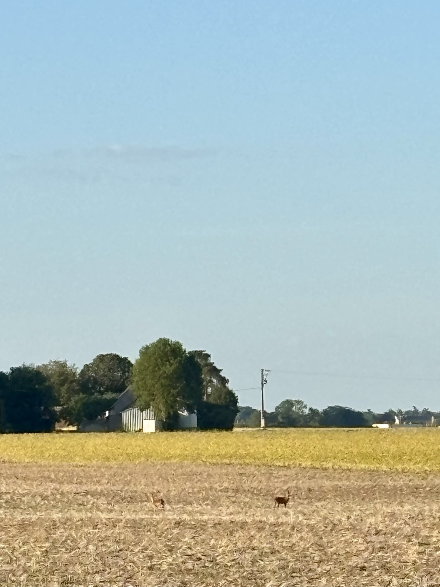 Il y a plus de bosquets aussi et nettement plus d’animaux, beaucoup de passereaux, des palombes, des faisans, un rapace, probablement une buse, un lapin… et deux chevreuils.
