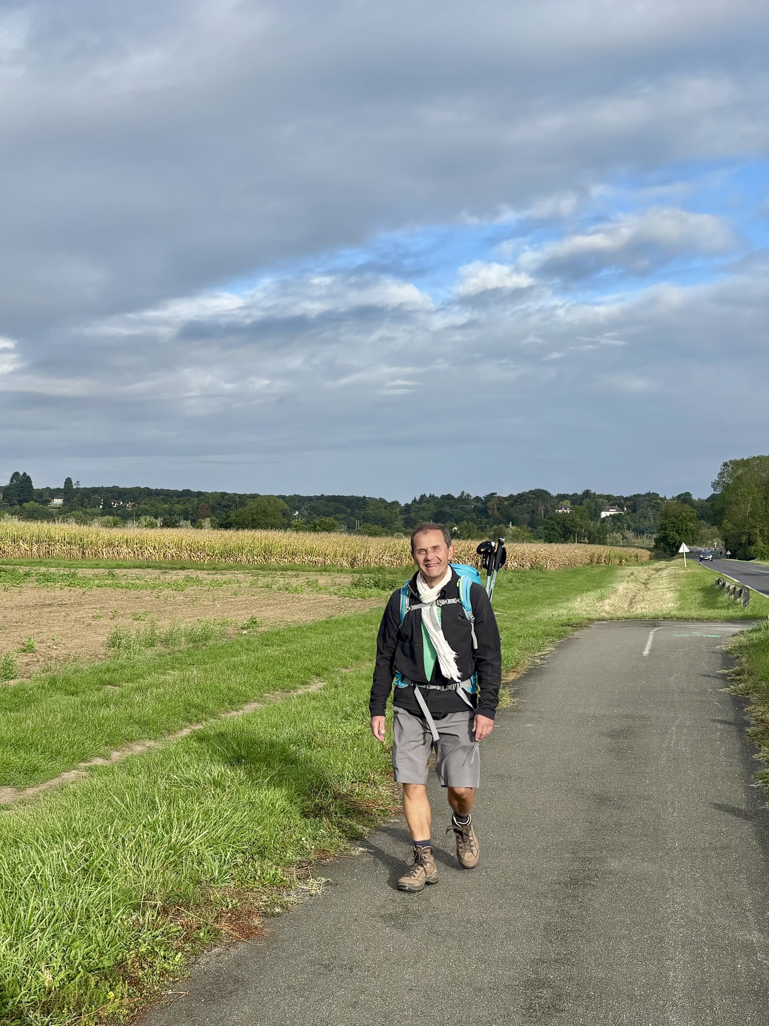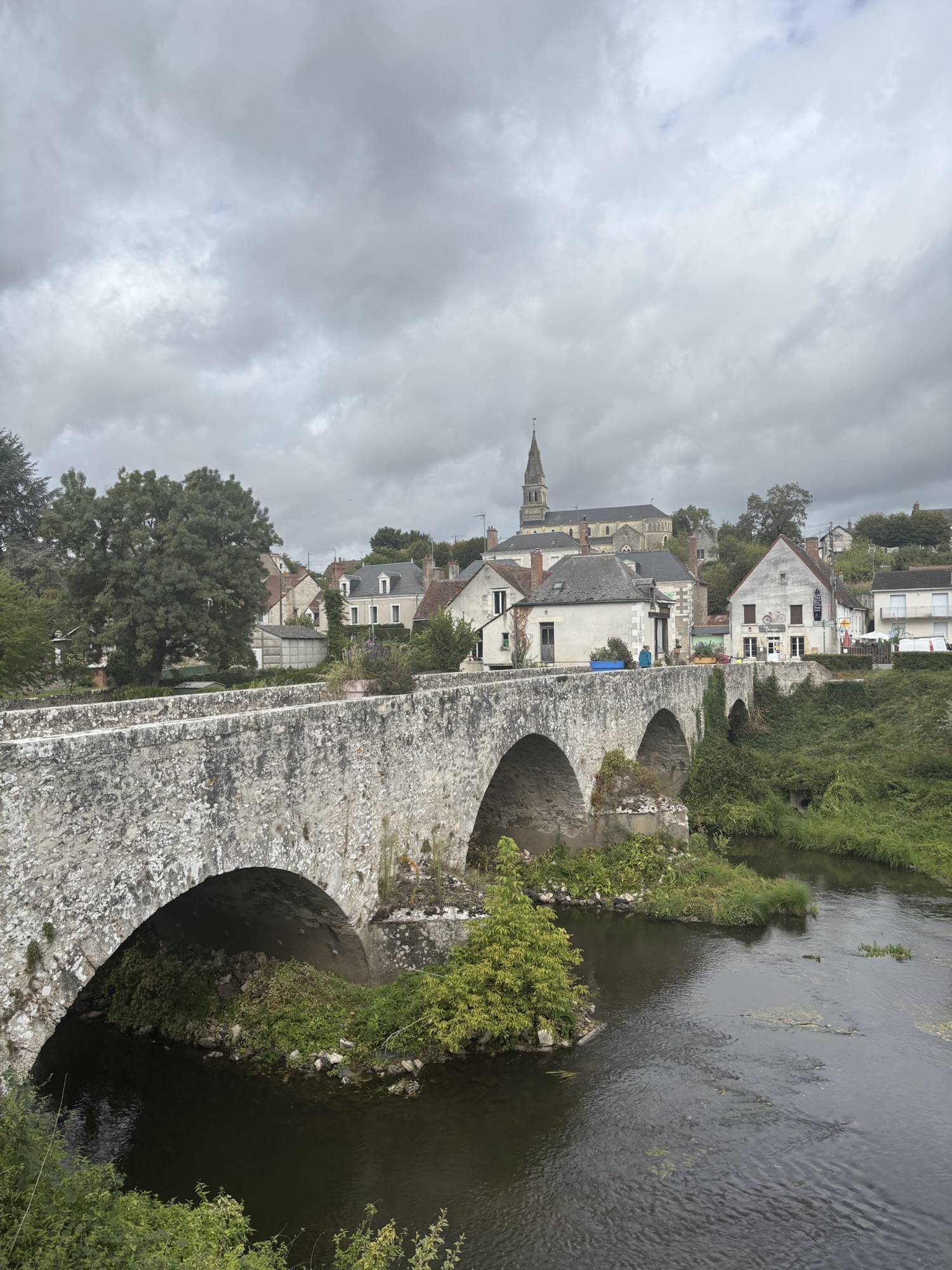 Candé-sur-Beuvron, où nous piqueniquons. Ça a été l’occasion de faire connaissance avec deux cyclistes néo-zélandaises. La première a démarré en Allemagne pour retrouver sa copine à Paris, ensemble elles suivent, comme moi mais à bicyclette, la voie de Tours jusqu’à Saint-Jean-Pied-dePort. Ensuite la première continuera à pieds jusqu’à Compostelle. Voilà un programme sympa !