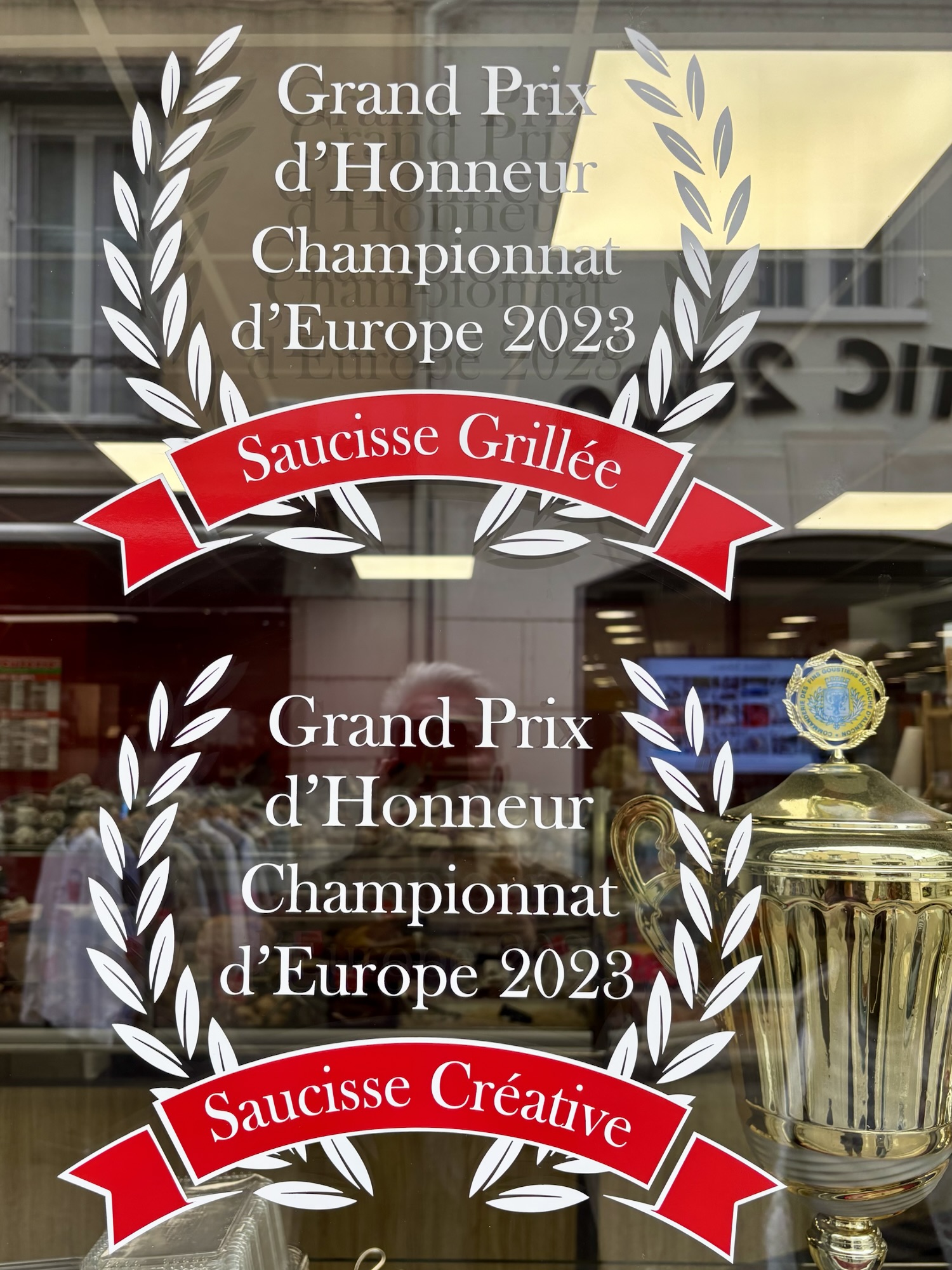 Il y a des championnats dont on ne soupçonne pas l’existence. Ce boucher collectionne les coupes. Voici deux de ses titres.