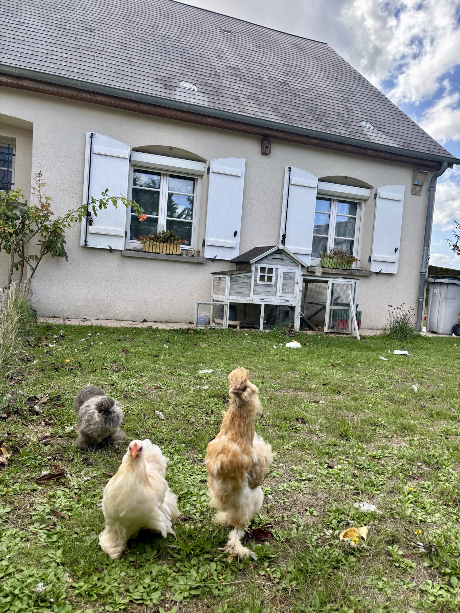Mais non pas dans le poulailler! Dans la maison derrières!