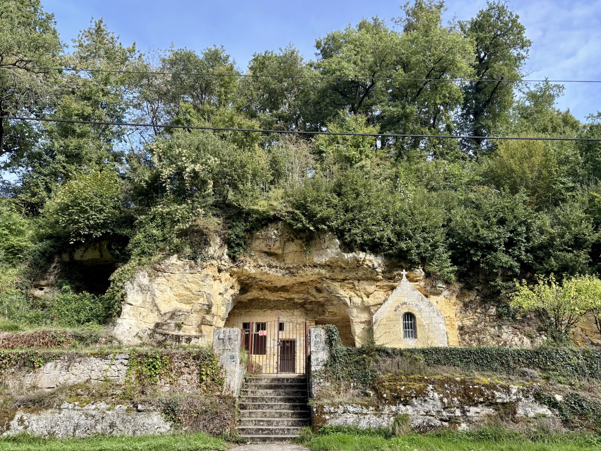 Je décide de faire un petit détour par rapport au tracé officiel, il me fait emprunter la périlleuse départementale 910 pendant quelques centaines de mètres, afin de retrouver la paisible vallée du Courtineau. Cette petite rivière sillonne entre deux falaises de tuffeau. Elle recèle différentes maisons troglodytes dont certaines sont encore occupée. Mais sa pépite est une petite chapelle. Elle aussi est creusée dans la falaise, elle est dédié à Notre-Dame de Lorette.