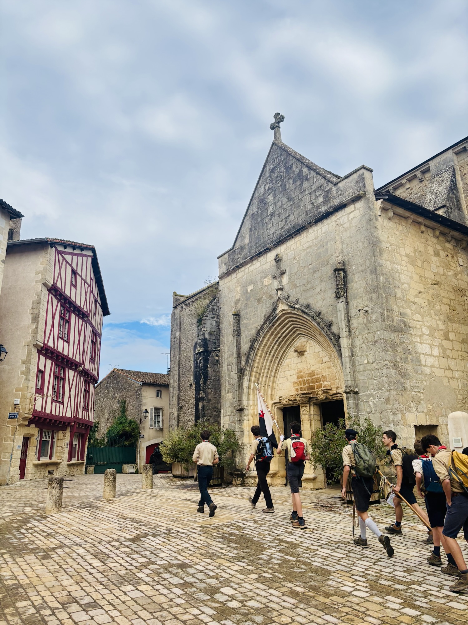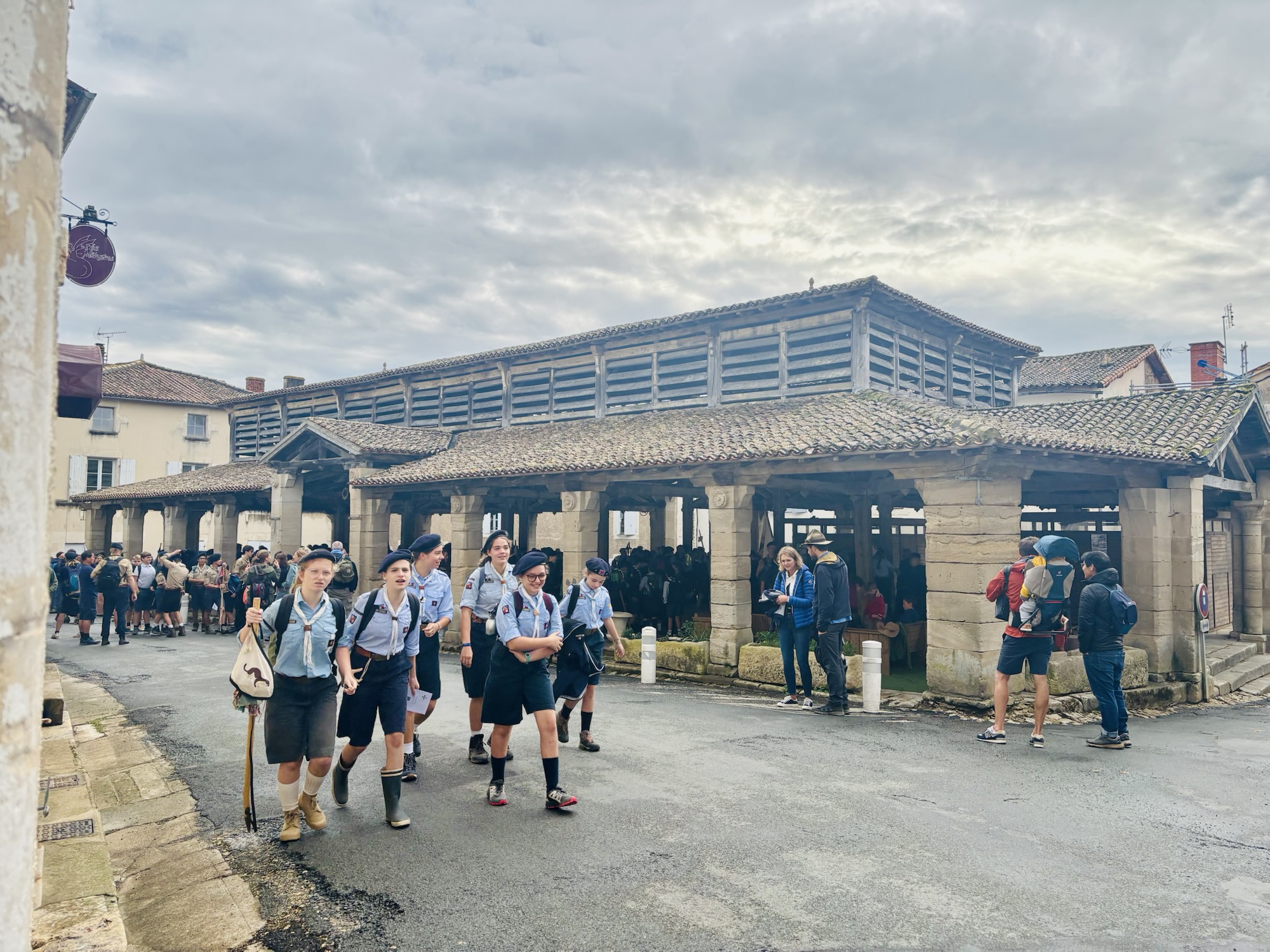Lorsque j’arrive à la halle, elle est remplie d’un grand brouhaha et et d’un rassemblement de scouts, visiblement très catholique, avec leur béret et leurs oriflammes.
