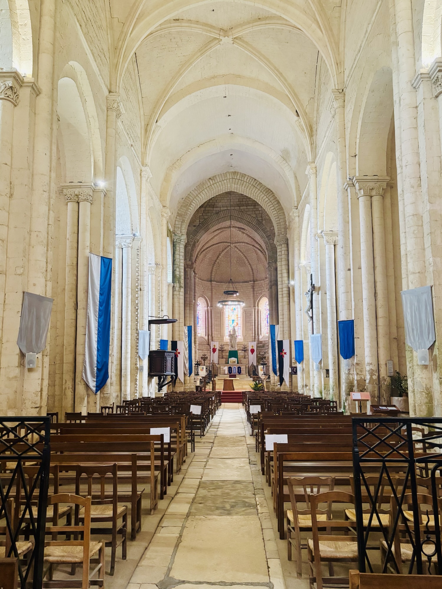 Avant leur messe, j’ai juste un petit quart d’heure pour visiter la très belle église Saint Junien. Elle a été construite en 1025. Elle fête donc son premier millénaire !