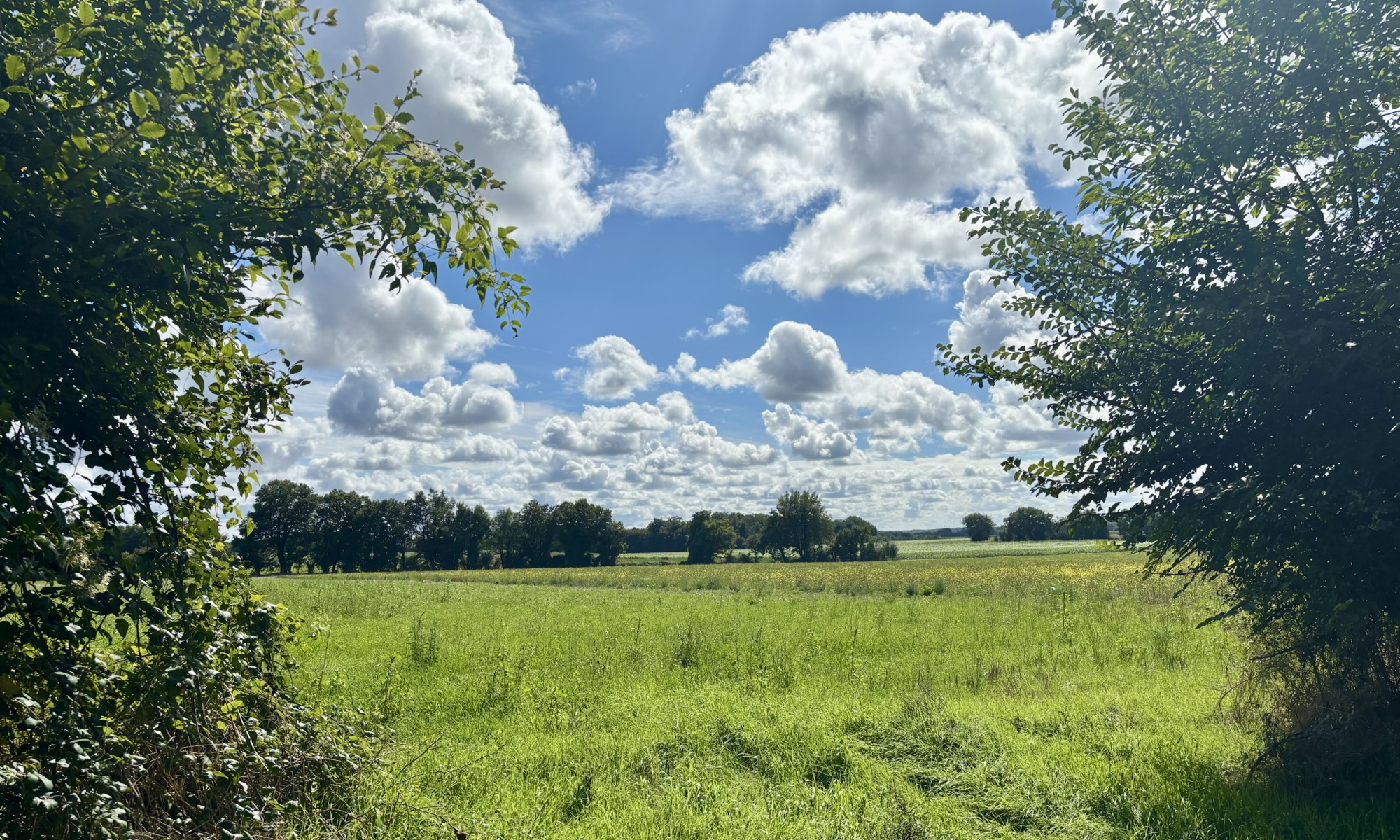À la sortie du village, Jean-Claude abandonne son potager pour venir à ma rencontre. Cela fait des années qu’il voit passer des randonneurs et en me voyant, il s’est décidé à me demander quelques renseignements sur le chemin de Compostelle. Effrayé par la distance que je dois encore parcourir aujourd’hui, 20 km, il propose de me conduire. Merci, Jean-Claude, mais je si je suis ici, c’est pour marcher, justement.D’autant plus que le soleil a fait un retour inespéré. Aujourd’hui j’ai opté pour l’itinéraire cycliste, qui se passe sur du dur, plutôt que de patauger dans la boue et les flaques provoquées par les pluies intenses de cette nuit.