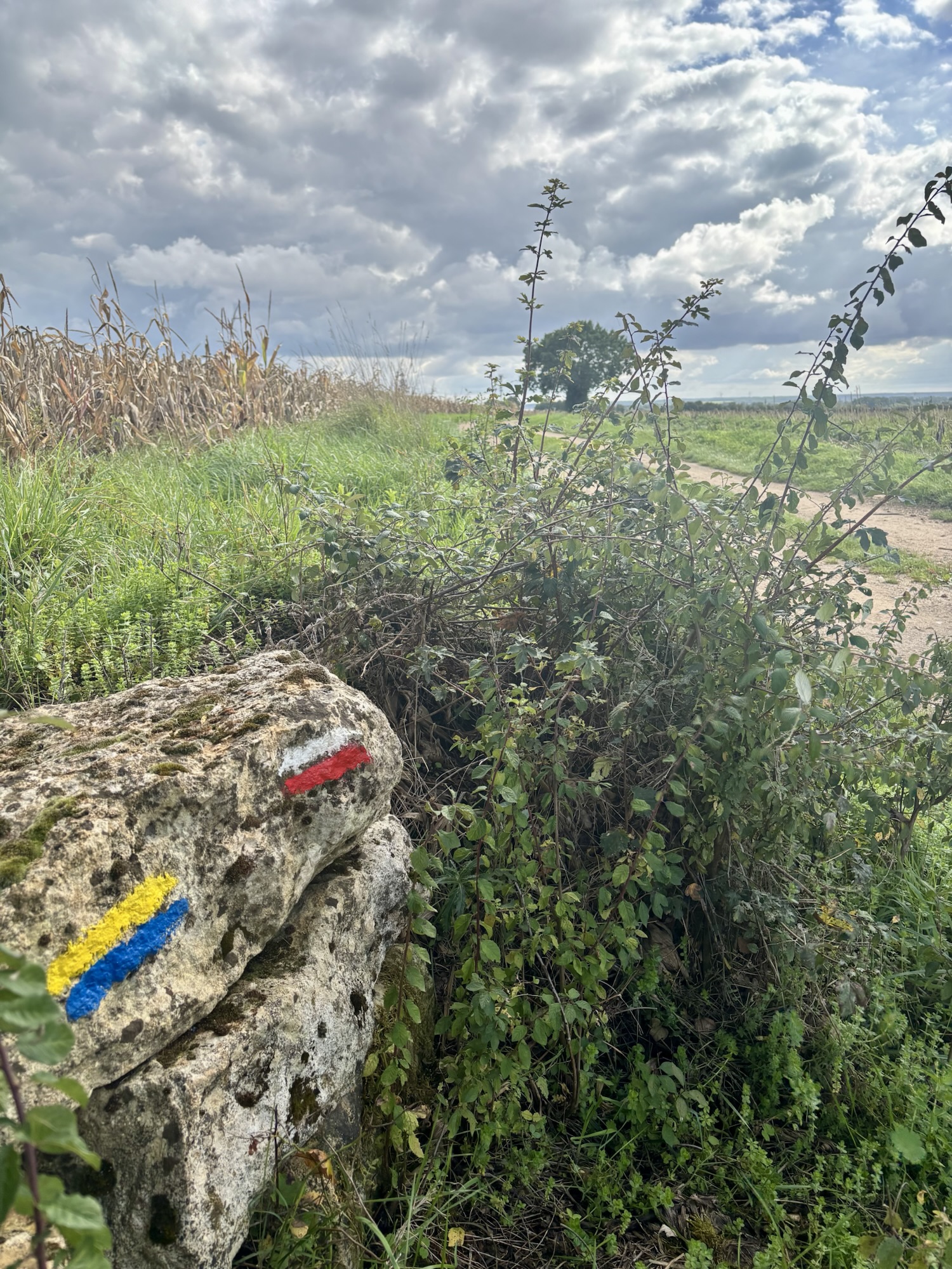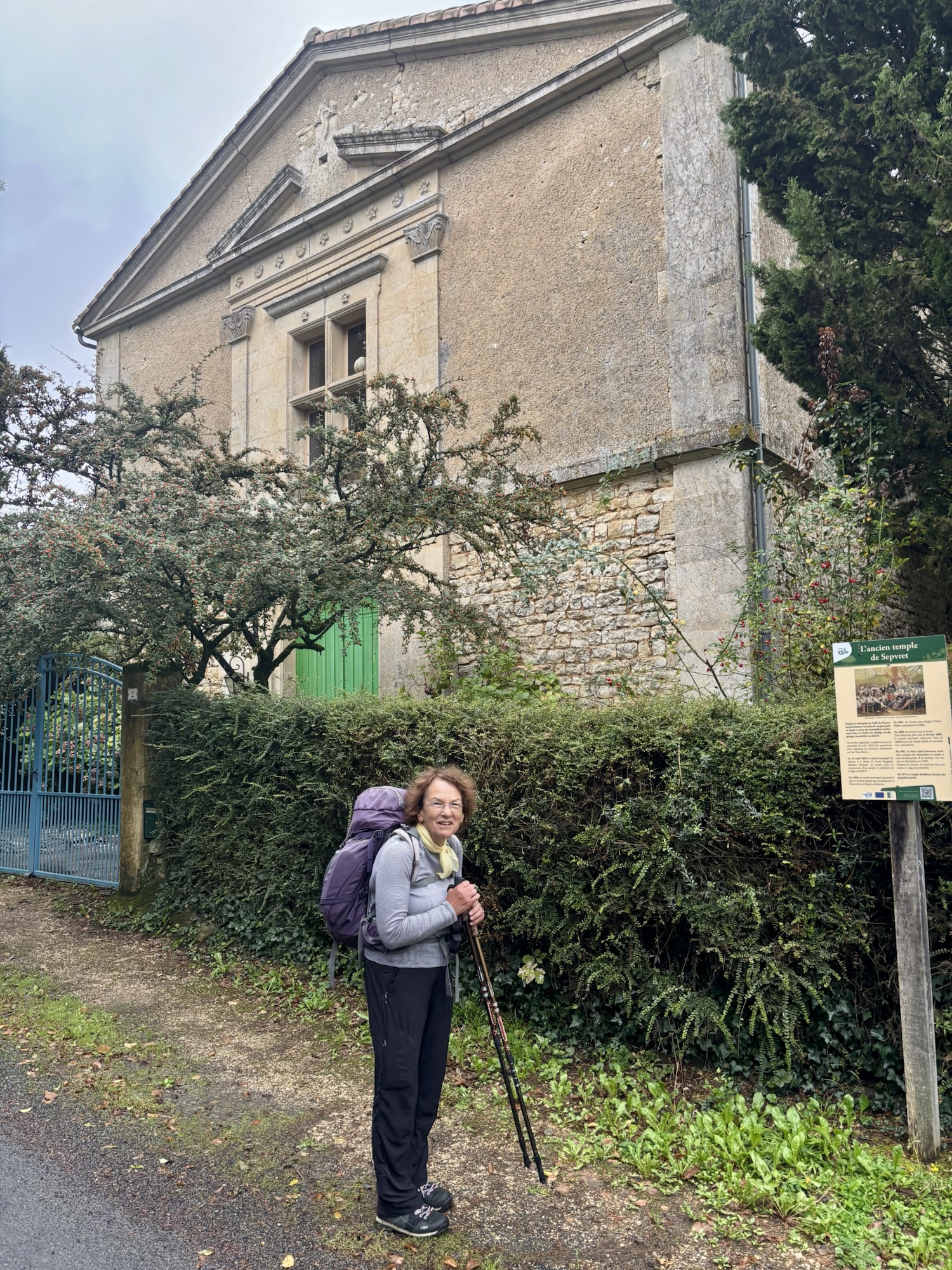 Un peu plus loin, devant l’ancien temple protestant, je rencontre Josiane. Parisienne, ancienne infirmière, c’est aussi une pèlerine récidiviste. Pendant les 10km suivants, nous partageons quelques tuyaux et recommandations pour nos chemins à venir. Nous avons également plein de temps pour échanger quelques considérations philosophiques.