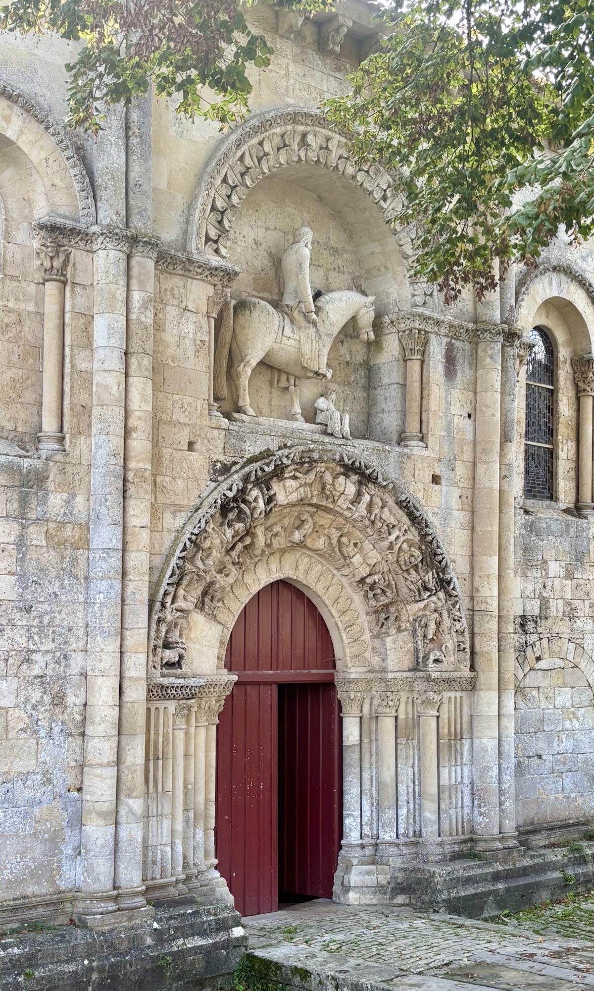 Nous arrivons à Melle juste pour l’heure française du déjeuner. J’apprends que Melle était un site de monneyage au moyen-âge. Sous le règne de Charlemagne déjà l’argent, le métal, y était extrait d’une mine et directement transformé en monnaie. On peut encore visiter les galeries minières, mais le pèlerin a encore quelques kilomètres à marcher. Avant de partir, je vais quand même saluer Saint Hilaire.