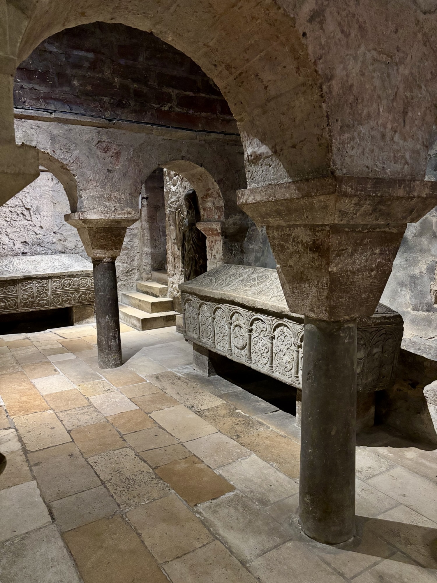 Et c’est dans cette rare crypte du Ve siècle, que je tombe nez à nez avec Marie-Josée, une pèlerine de petite taille, que j’ai déjà entraperçue avant-hier. Nous nous retrouverons sûrement ce soir et demain soir aux gîtes.