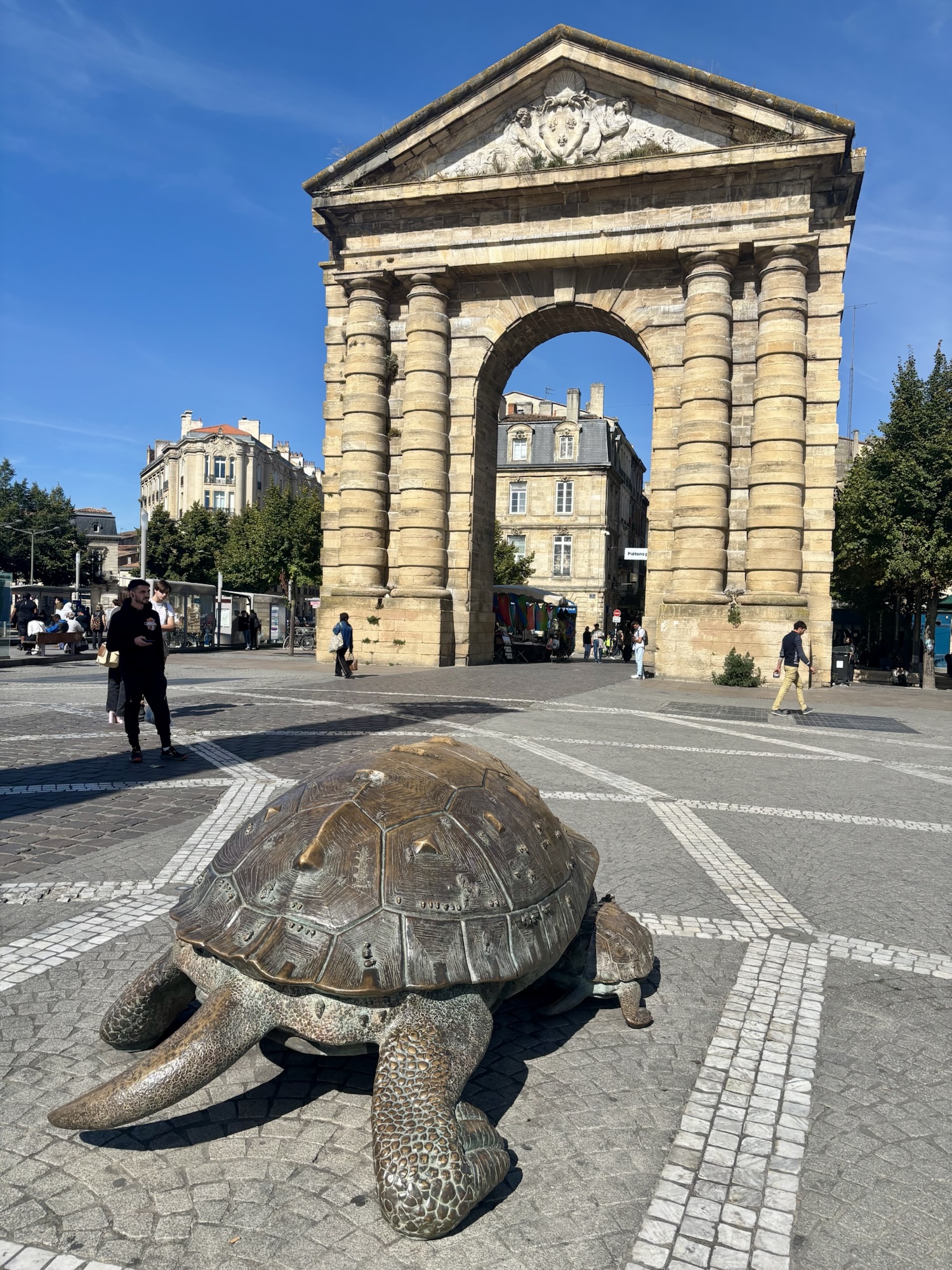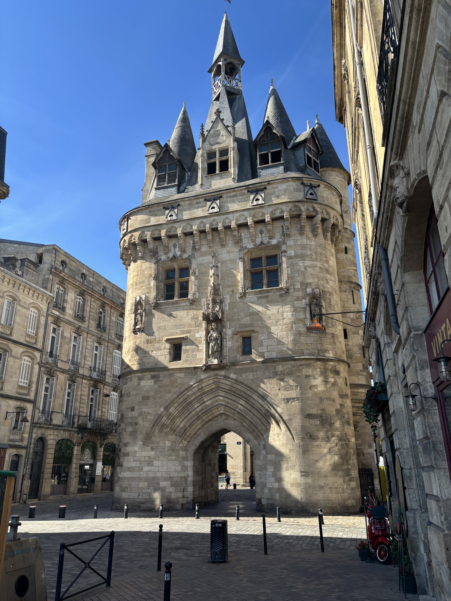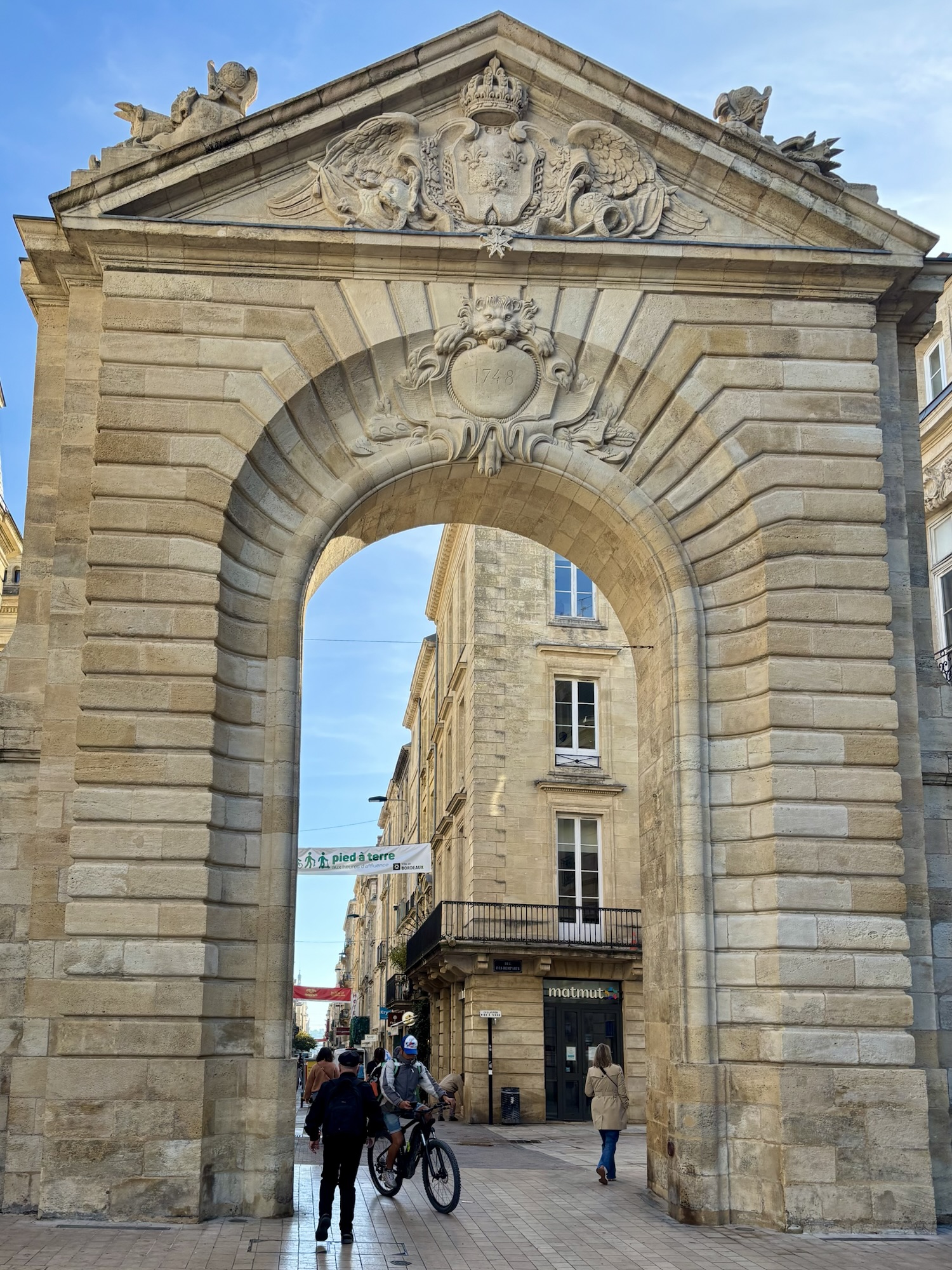 Avant de quitter la ville, un moment de recueillement, pendant que je savoure sa spécialité, le cannelé. Mmmh! Je sors dans le quartier, l’université, disons un peu moins propre ou un peu plus tagué. Décidément, Bordeaux aime les portes monumentales.