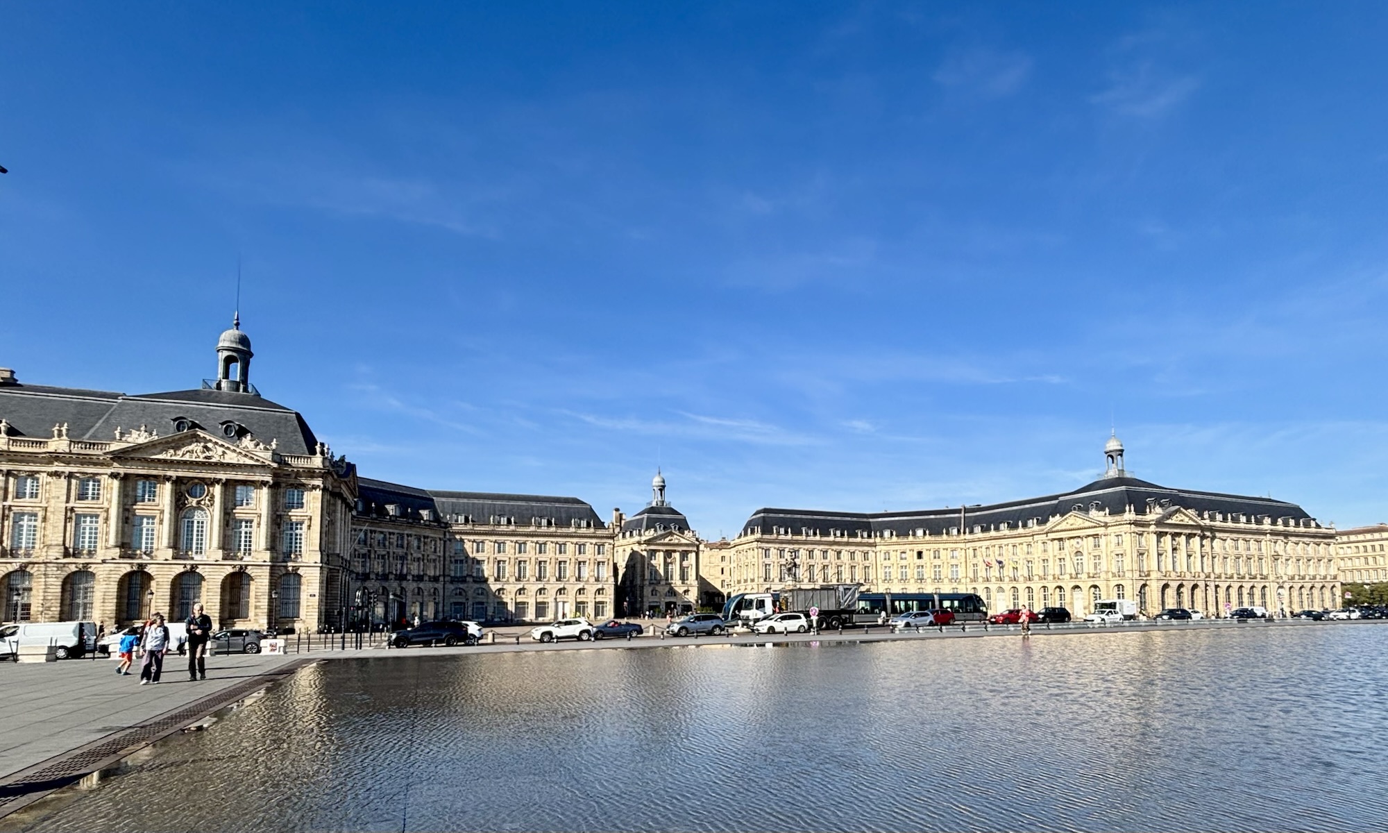 La très belle et très symétrique place de la Bourse derrière son miroir d’eau. Les bâtiments classiques de la ville datent de l’époque où elle profitait de la lucrative traite négrière.