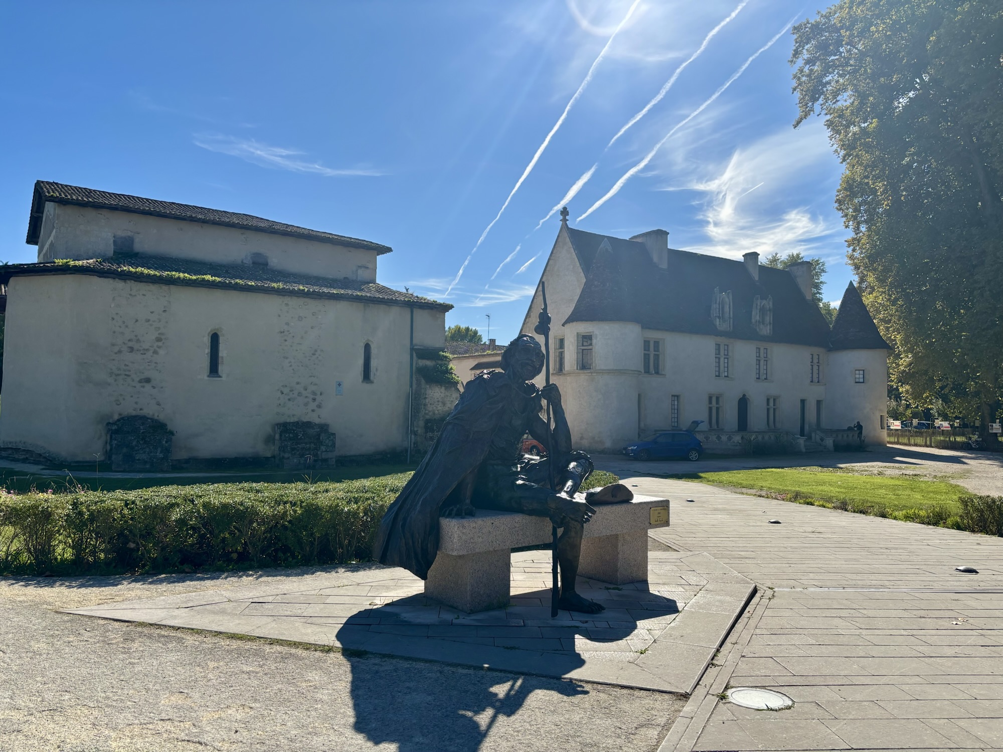 Et voilà le prieuré de Cayac, où un pèlerin semble m’attendre sur un banc. Construit pour servir de halte pour les marcheurs vers Compostelle au XIIième, la municipalité a eu l’excellente idée de lui redonner ce rôle.