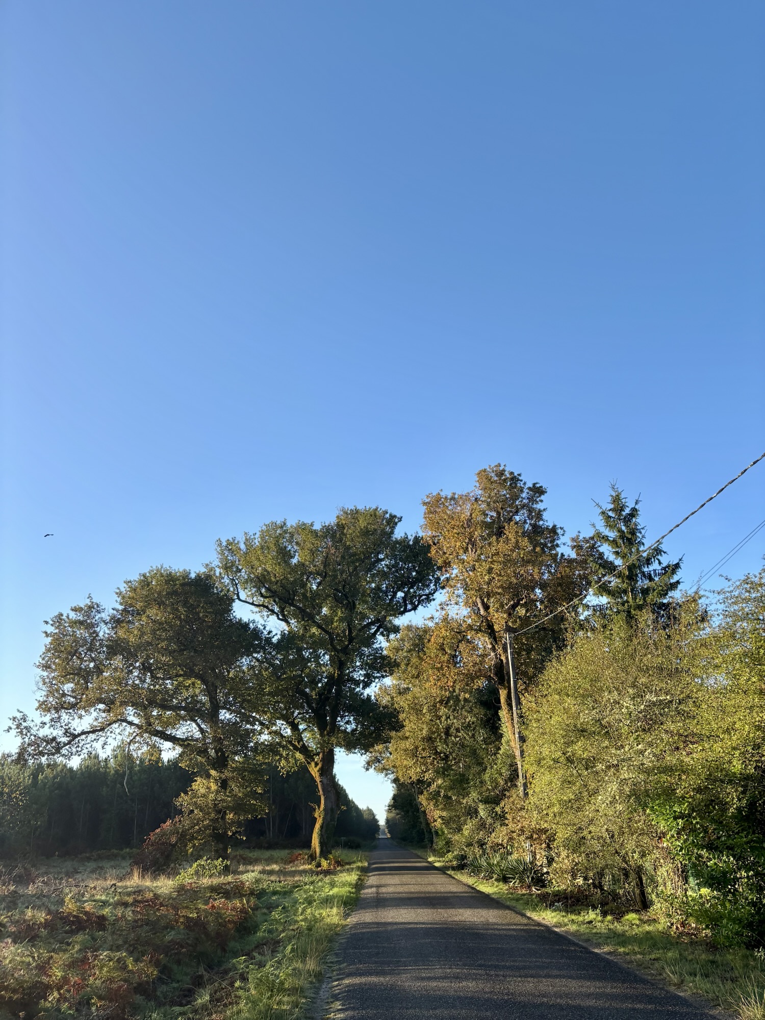 Le petit vent froid en profite pour me mordre les doigts et le nez tant que le soleil se cache derrière les grands arbres. Le trajet aurait pu suivre sur une bonne vingtaine de kilomètres cette départementale 140 rectiligne.
