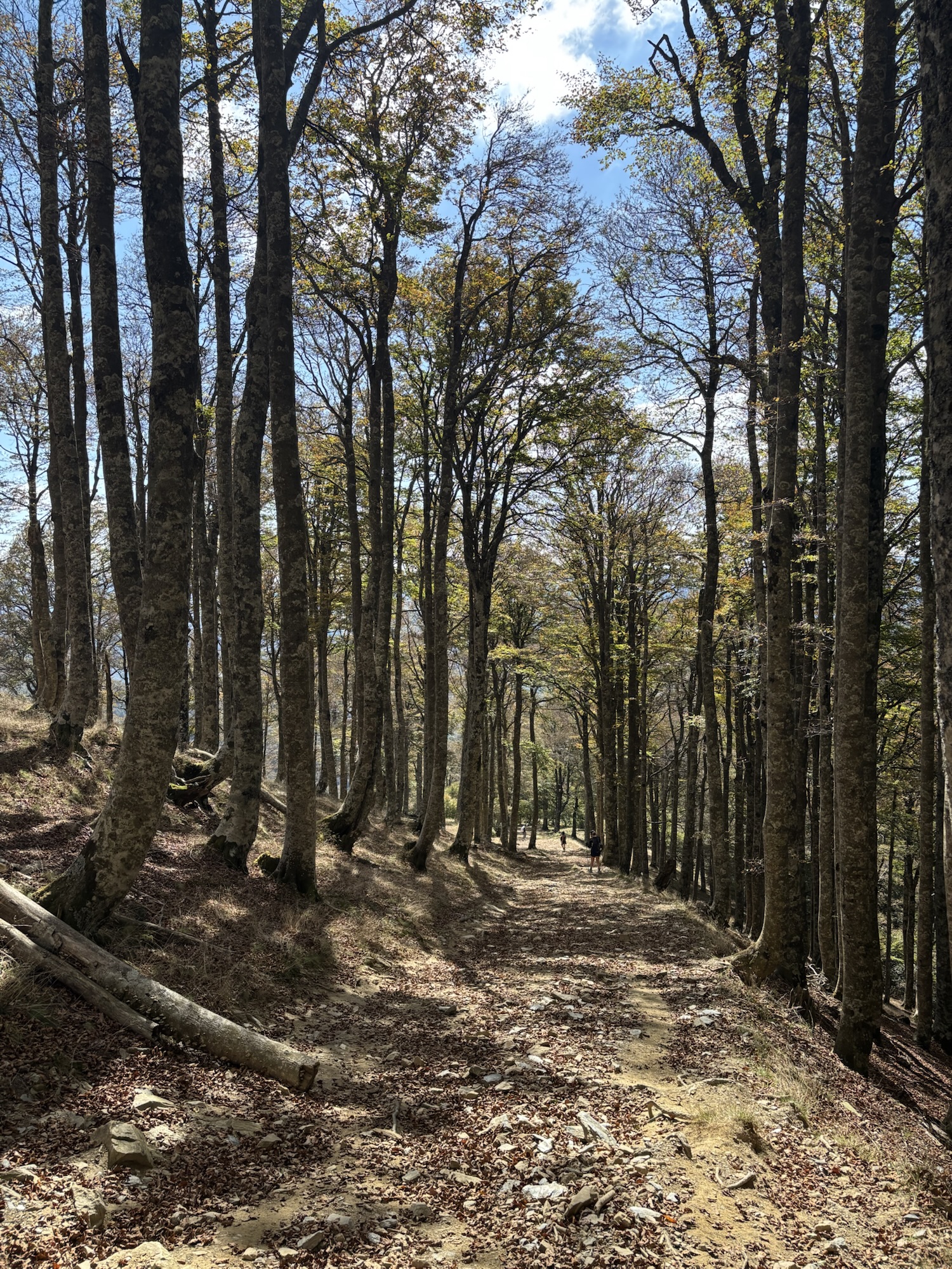 Il est temps maintenant de redescendre. Pour cela il faudra emprunter un chemin assez technique, un genre de piste noire rendue dérapante par un tapis de feuilles mortes.